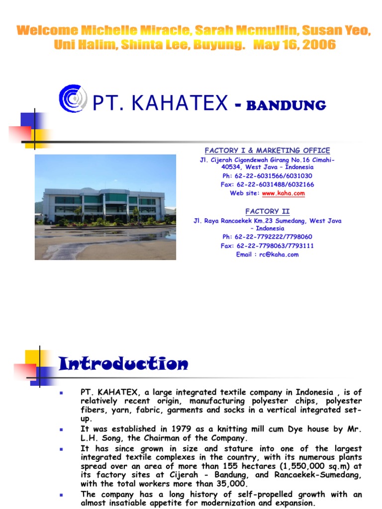 We at pt kahatex have made it our mission to keep expanding and modernizing facilities, and to explore new ways in innovative and sustainable manufacturing. Lowongan kerja pt kahatex via link 2021. Kahatex ini mempunyai 2 cabang di daerah bandung yaitu di cimahi tepatnya di cijerah dan satu lagi di rancaekek yang akan masuk ke. Garmen ternama di bandung.keseharian kita kerja di pt sansan saudaratex jaya. We extract the trade partners from pt kahatex jl cijerah cigondewah girang's 68 transctions.these companies are mainly located in united states,pakistan that including email and have transaction recently will be pushed.